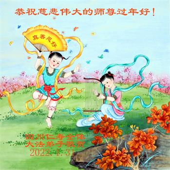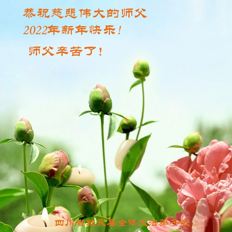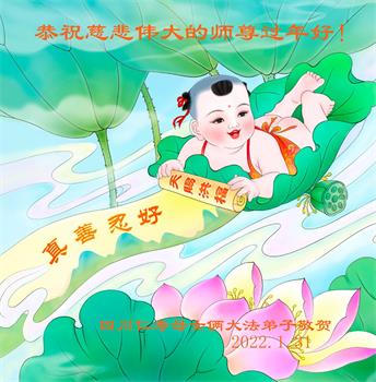 恭祝师尊新年快乐! 师尊传法三十载 再造穹宇救苍生 弟子有缘修大法 讲清真相明善恶 法徒随师返天庭 得救众生谢圣恩 四川遂宁大法弟子叩拜 二零二二年一月二十七日 四川遂宁大法弟子恭祝师尊新年快乐!