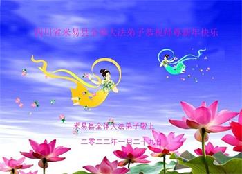 【明慧网二零二二年二月一日】 四川省攀枝花市米易县全体大法弟子恭祝师尊新年快乐!