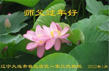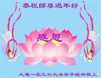 感恩师尊的慈悲救度! 辽宁大连市大法弟子一家三口及外地的母亲同修恭祝师尊新年好!