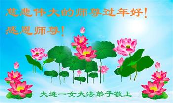 大连市一学法小组大法弟子恭祝师尊过年好!师尊您辛苦啦!感恩师尊慈悲救度! 辽宁省大连泉水大法弟子恭祝师尊过年好!