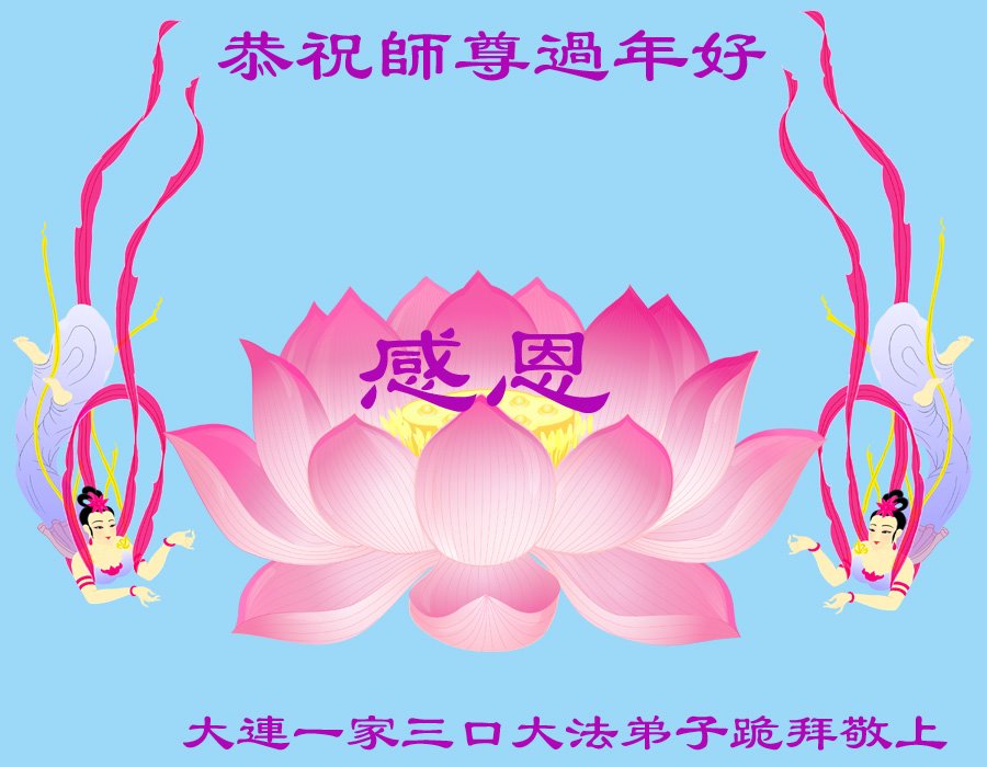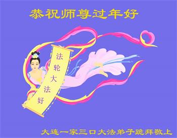 大连市一家三位大法弟子恭祝师尊过年好!师尊您辛苦啦!感恩师尊慈悲救度! 辽宁省大连一学法小组大法弟子恭祝师尊过年好!