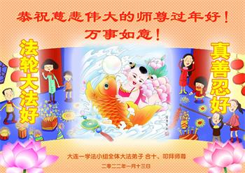 【明慧网二零二二年二月一日】 辽宁省大连一学法小组全体大法弟子恭祝慈悲伟大的师尊过年好!