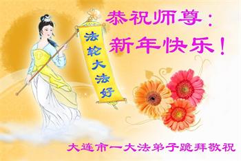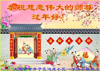辽宁省大连一事业单位大法弟子给慈悲伟大的师尊拜年!