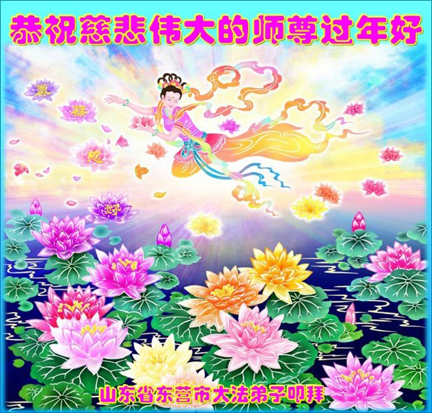 新年伊始,弟子们恭祝师尊新年好!感恩师父洪传大法,慈悲救度苦海之中迷离的生命;唤醒了生命的本源、先天的纯真,使迷途中的生命了悟了宇宙真理和生命存在的真正意义,走上助师正法、修炼、救度众生、返本归真的路。无论修炼的征程艰难险阻、生死攸关,又怎能撼动这坚不可摧、义无反顾的坚定信念;又怎能羁绊弟子们助师正法、修炼、救度众生的精進步伐。弟子将不忘初心,牢记师尊教诲,做好三件事,兑现自己史前誓约,完成助师正法的洪誓大愿。 山东省惠民县全体大法弟子敬上,合十 山东省东营市大法弟子恭祝慈悲伟大的师尊过年好!