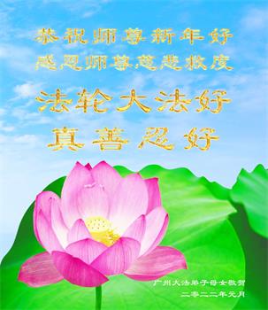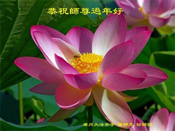愿师尊能早日回到中国大陆,弟子想念师尊。愿越来越多的世人能够明白真相,知道大法的美好。在新的一年里,弟子一定要更加精進,做好三件事,听师尊的话,谢谢慈悲伟大的师尊。 广东省广州市大法弟子恭祝慈悲伟大的师尊过年好!