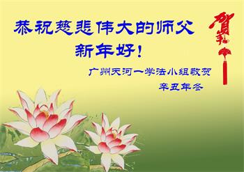 广东广州市天河区一学法小组大法弟子恭祝慈悲伟大师尊新年快乐!