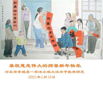河北张家口市怀安县一学法小组全体大法弟子及家人恭祝师尊新年快乐!
