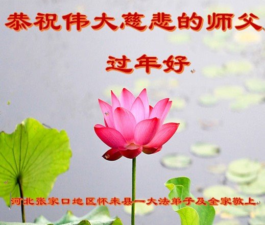 恭祝慈悲伟大的师尊过年好! 法轮大法好!真善忍好!感恩师尊慈悲救度! 河北省张家口市怀安县一大法弟子携全家人敬上 河北省张家口市怀安县学法组全体大法弟子恭祝慈悲伟大的师尊过年好!
