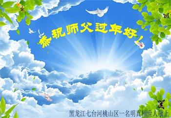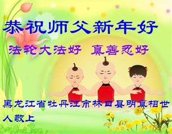 黑龙江省牡丹江市林口县一大法弟子明真相的儿子和儿媳恭祝师父新年好!