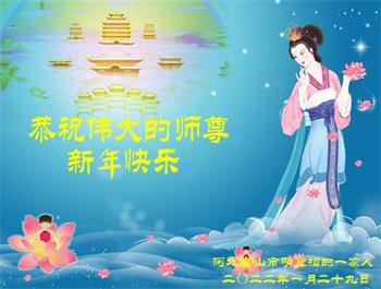 感谢李大师的法轮大法让我们认清了中共的邪恶,在这乱世中教我们做人的道理,守住心中的善,为我们的家庭和谐,工作稳定奠定了基础。再次恭祝您过年好! 河北省邯郸曲周大法弟子家属6人恭祝师父新年快乐!