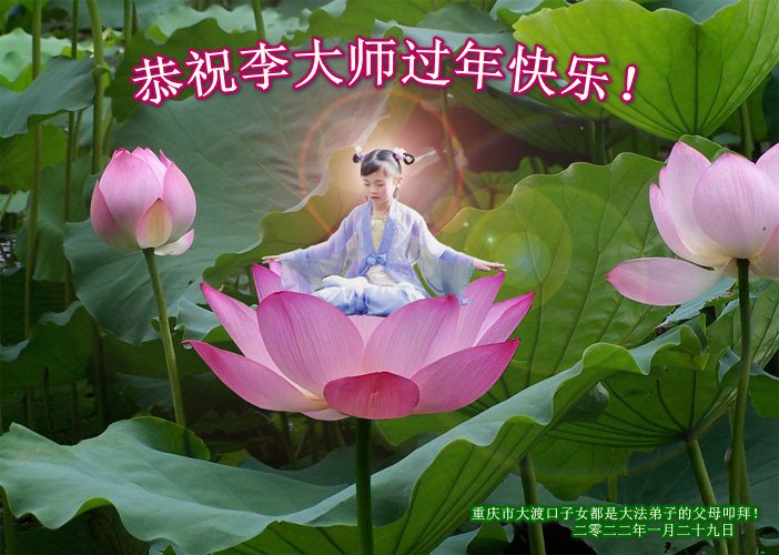 师父延续来的日子里, 我们地区的大法弟子更要多学法,学好法,修好自己,助师正法,救度众生,做一个真真正正的合格的大法弟子!破除一切干扰和间隔,真正向内找,整体提高,整体升华。 谢谢师尊的慈悲苦度!叩拜!合十 重庆市大渡口子女都是大法弟子的父母恭祝李大师新年快乐!