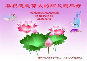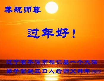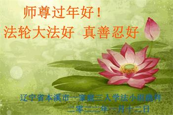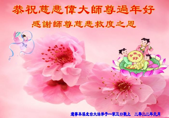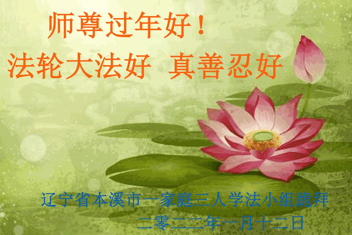 【明慧网二零二二年二月一日】 辽宁本溪大法弟子一家人恭祝慈悲伟大的师父过年好!