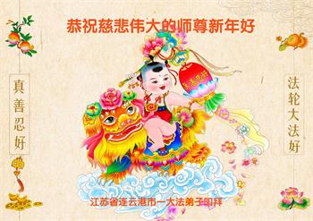 值此新年之际,江苏省连云港市多位大法弟子恭祝慈悲伟大的师尊新年快乐! 江苏省一大法弟子携全家恭祝慈悲伟大的师尊新年快乐!