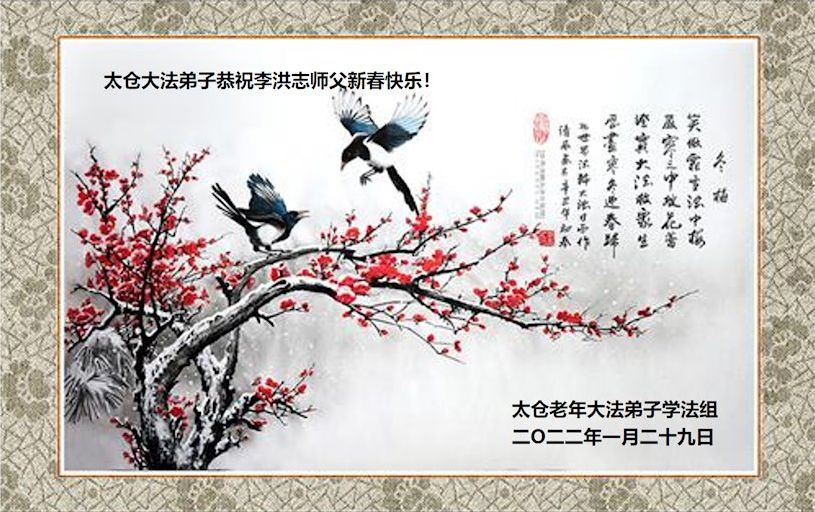 中国传统的壬寅年新年即将来临,江苏扬州大法弟子想念师父,感恩师父的慈悲救度,恭祝师尊过年好! 新的一年弟子更要学好法精進实修,做好三件事,助师正法,多救人,圆满随师还。 江苏省苏州市太仓市一老年学法小组大法弟子恭祝师父新年快乐!