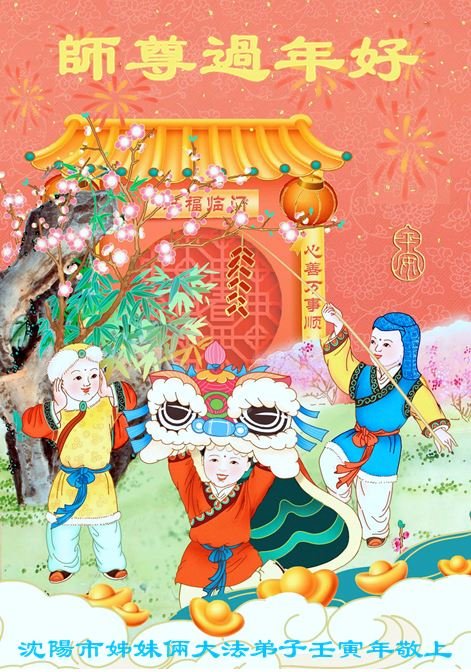辽宁省沈阳姊妹俩大法弟子恭祝师尊过年好!