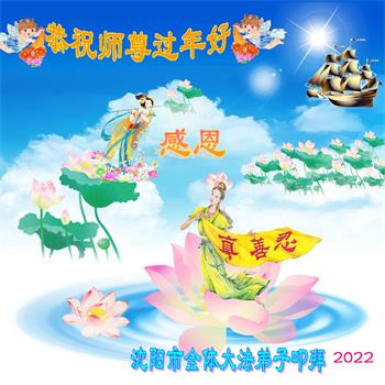 慈悲伟大的师尊:过年好! 沈阳市全体大法弟子,怀着无比感恩之心给师尊拜年,恭祝师尊新年快乐! 时光飞驰,转眼又是一年。回望这一年来,沈阳市大法弟子在做好三件事上有很大的突破。很多同修都在背法,包括八十多岁的老年同修,背法速度甚至超过很多年轻同修。大家互相鼓励,比学比修,正念在不断加强,做证实大法的项目越来越用心,讲真相的效果也越来越好。我们切身感受,师尊在利用一切机会成就着每个弟子。谢谢师尊的慈悲救度与时时保护! 我们还有很多不足之处,我们一定要在学好法上多下功夫,才能做到时时处处以法为师,才能做到任何矛盾中首先找自己,修自己。如果都能做到首先保证自己的实修与提高,那么整体自然就会升华上来。沈阳市大法弟子一定会更加精進,珍惜这所剩无几的宝贵时间,多救人,兑现使命。让师尊少操心,多欣慰。 叩拜恩师! 辽宁省沈阳市全体大法弟子敬上 二零二二年一月二十九日 辽宁省沈阳市铁西区大法弟子恭祝师父新年快乐!