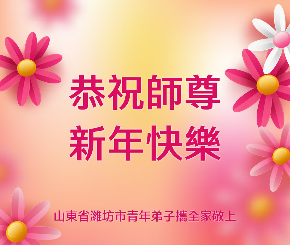 山东省潍坊市青年大法弟子携全家恭祝师尊新年快乐!