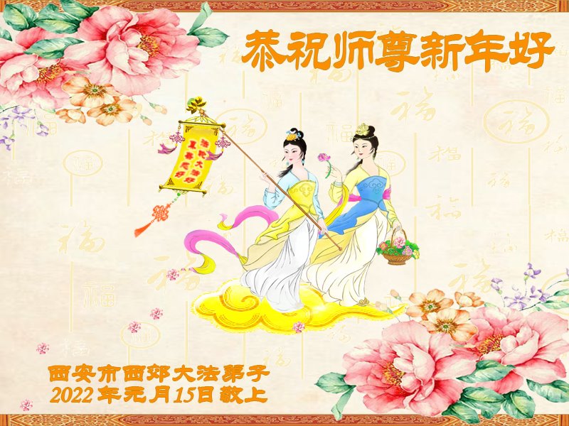 恭祝慈悲伟大的师尊2022年过年好! 陕西省西安市西郊大法弟子敬上 陕西省西安市西郊一学法小组大法弟子恭祝慈悲伟大的师尊2022年过年好!