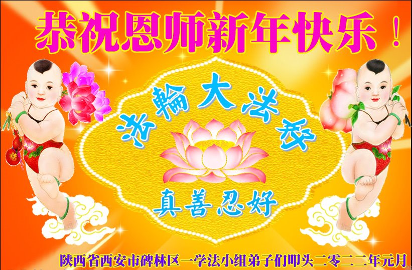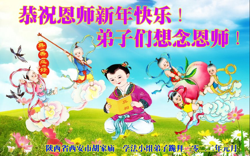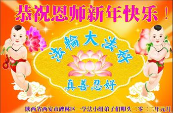 弟子们想念恩师! 陕西省西安市碑林区一学法小组大法弟子恭祝恩师新年快乐!