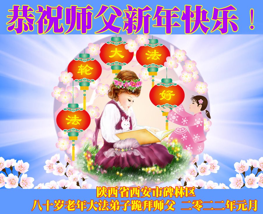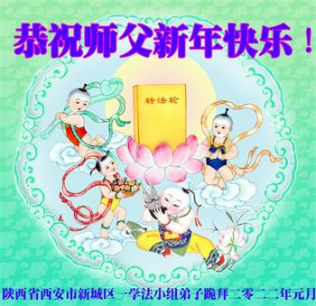 【明慧网二零二二年二月一日】 陕西省西安市胡家庙一学法小组大法弟子跪拜!恭祝恩师新年快乐!