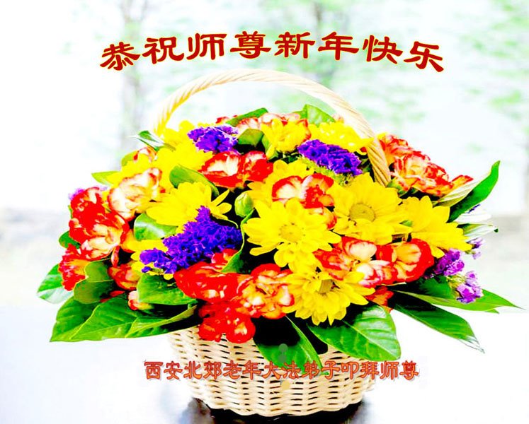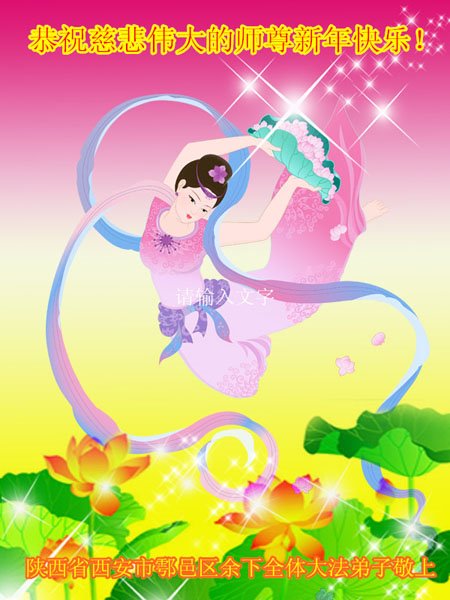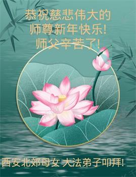 恭祝慈悲伟大的师尊新年快乐!感恩师尊慈悲救度! 陕西省西安市扈邑区全体大法弟子叩拜! 陕西省西安北郊老年大法弟子恭祝师尊新年快乐!