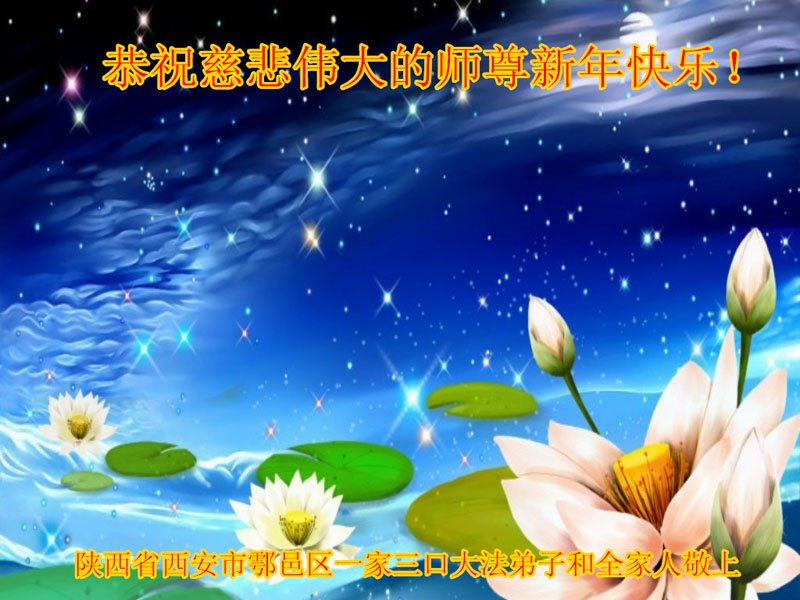 陕西省西安市鄠邑区一家三位大法弟子携全家人恭祝慈悲伟大的师尊新年快乐!