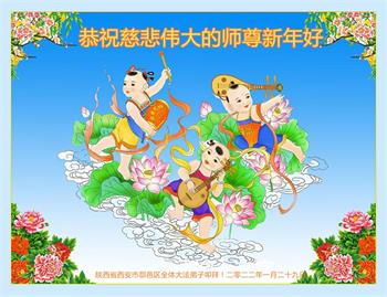 陕西省西安市西郊大法弟子恭祝慈悲伟大的师尊2022年过年好!