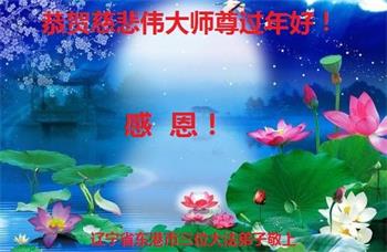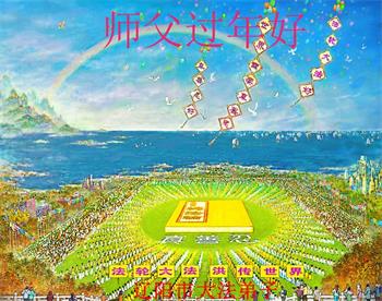 师尊过年好!感恩师尊慈悲救度!谢谢师父! 辽宁丹东一家大法弟子向师父问候新年好!恭祝师尊过年好!
