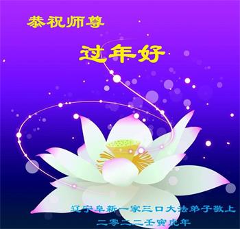 辽宁阜新一家三位大法弟子恭祝师尊过年好!