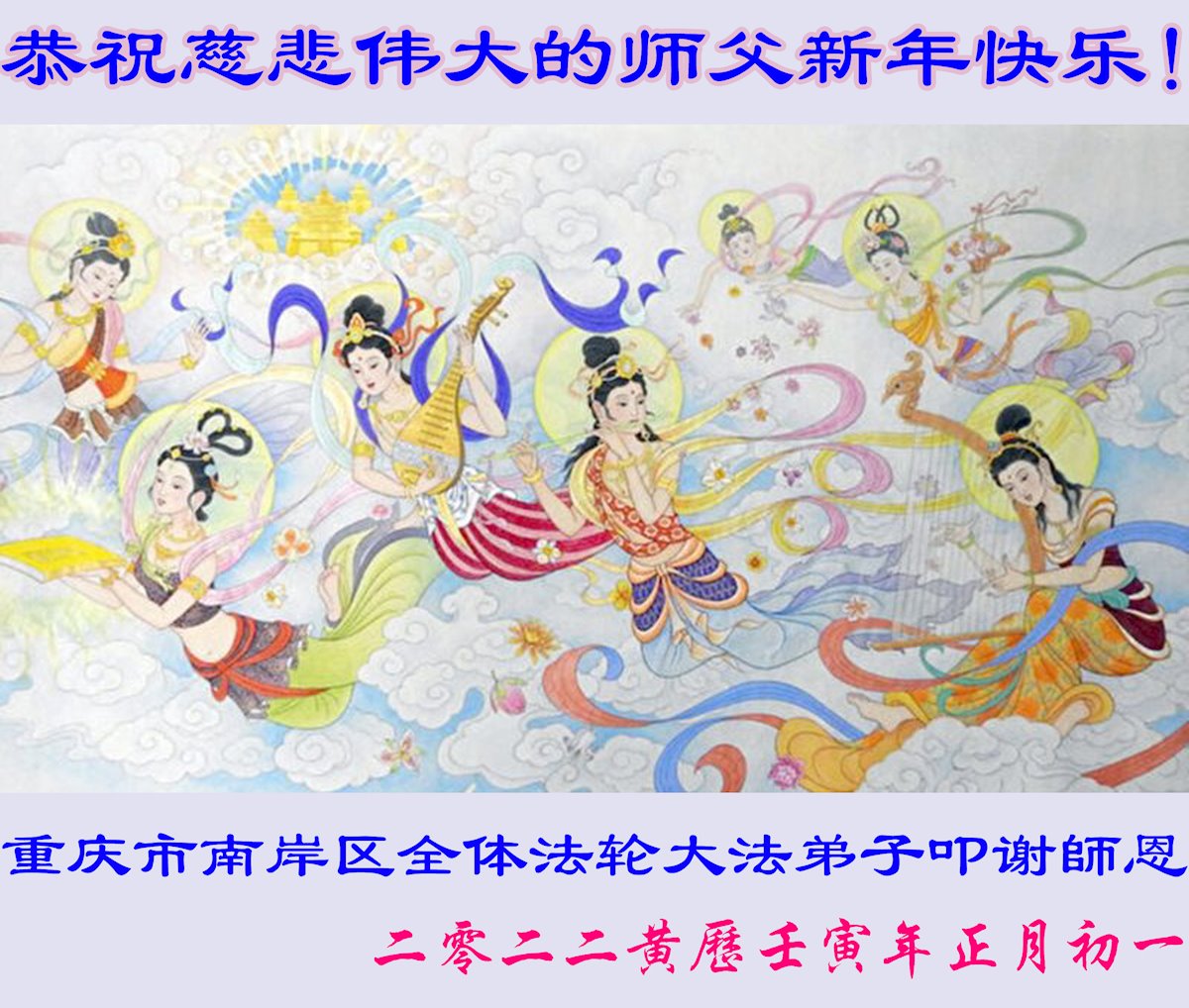 重庆市南岸区全体法轮大法弟子给师父拜年!恭祝慈悲伟大的师父新年快乐!感谢师父对弟子的慈悲苦度。 重庆市全体法轮大法弟子给师父拜年!