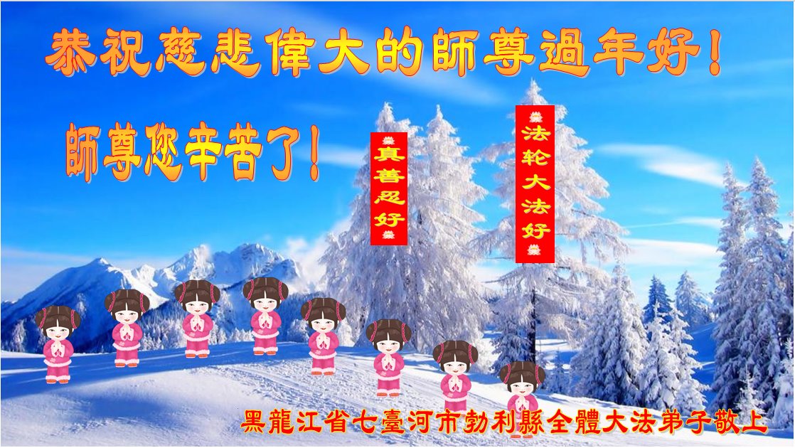 黑龙江省七台河市勃利县全体大法弟子中国新年问候师尊: 恭祝慈悲伟大的师尊过年好! 师尊您辛苦了! 法轮大法好!真善忍好! 黑龙江省七台河市勃利县全体大法弟子敬上 黑龙江七台河大法弟子恭祝师父新年快乐!