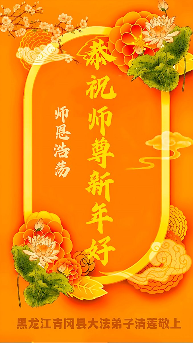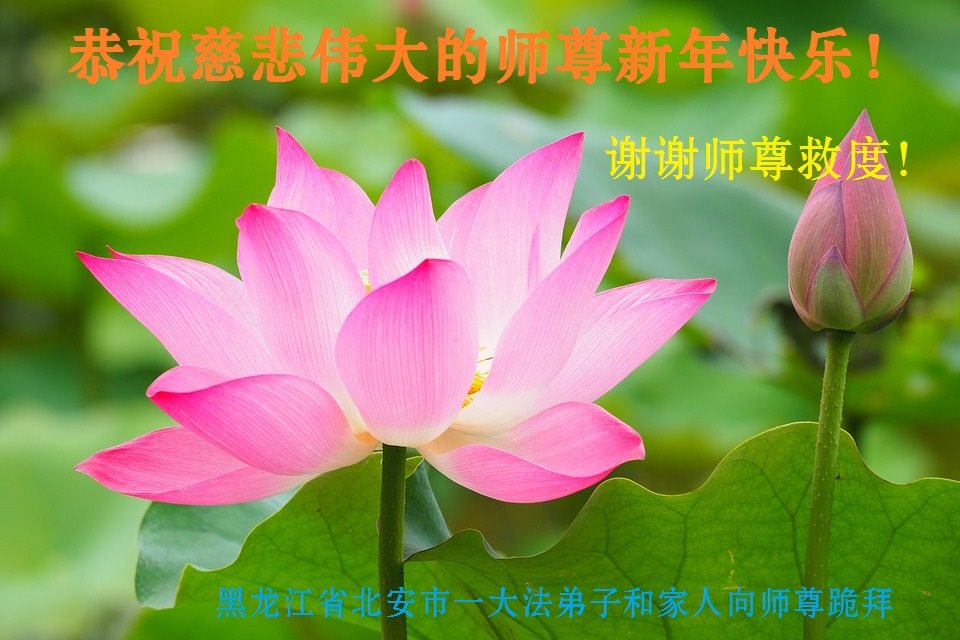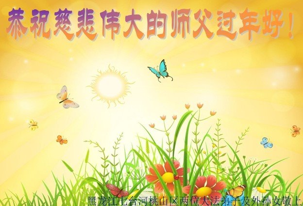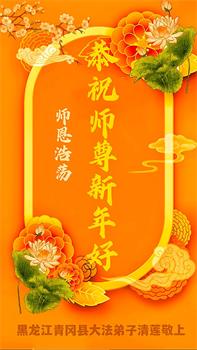 恭祝师父新年快乐! 弟子们一定谨遵师父教诲,越最后越精進,学好法,发好正念,多救人, 惟愿师尊笑。 弟子们叩首,拜谢师恩! 黑龙江省一边陲小镇全体大法弟子敬上
