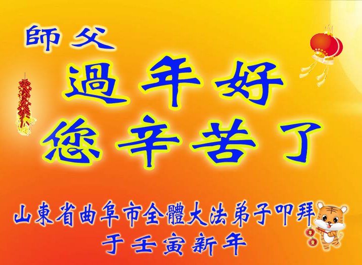 山东龙口市全家大法弟子恭祝师尊新年快乐! 山东省曲阜市全体大法弟子恭祝慈悲伟大的师尊过年好!