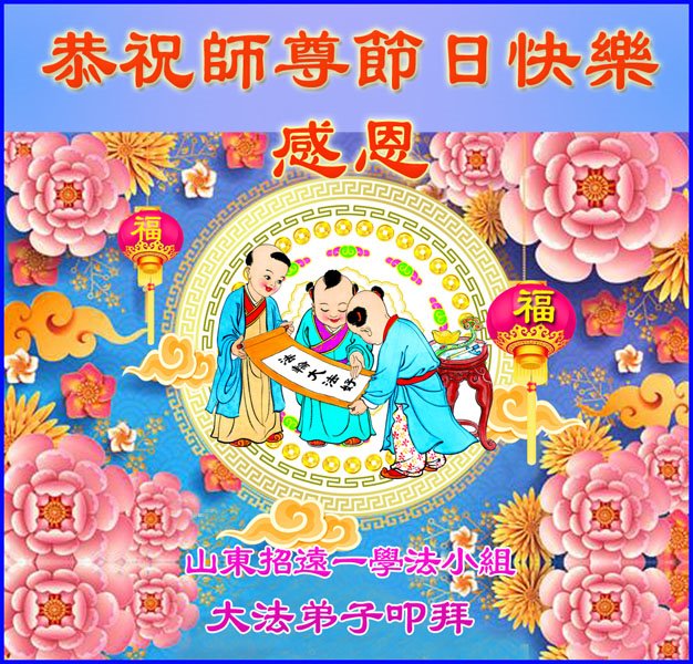 师尊您辛苦了!弟子修炼二十多年,感恩师尊时时看护着弟子;保护着弟子;点悟着弟子,弟子才走到今天。在今后的修炼路上,做好三件事,助师正法到底,请师尊放心! 山东省威海乳山市乳山口镇南、北唐家村大法弟子恭祝慈悲伟大的师尊过年好!