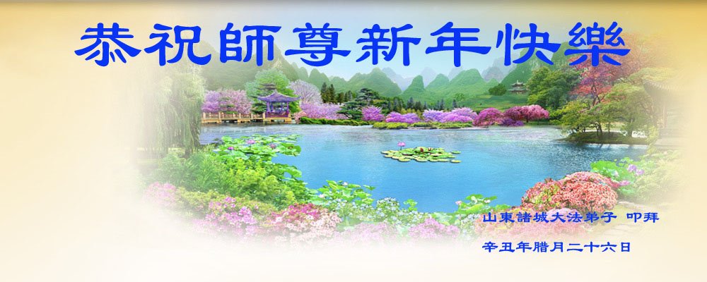 师尊您好:新的一年又开始了,弟子在您每时每刻的保护下走到了今天。弟子有决心去除对名、利、情的一切执着,用一颗纯净的心态学法炼功,发正念,向内找,实修自己,多救度众生,完成自己的使命,跟师父回家。愿师父多一份欣慰。叩谢师尊! 山东省潍坊市昌邑市北孟镇一学法小组大法弟子恭祝师尊新年快乐!