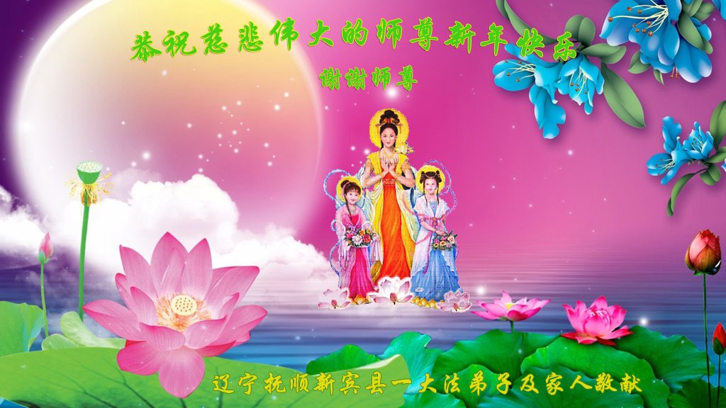 众生众徒感谢您 法正乾坤 绕寰宇 轮回辗转 尘中迷 大法开传 遇良机 法正身心 显神迹 好坏不分 谤天法 真假难辨 世人迷 善恶有报 是天理 忍辱负重 来救你 好似苍穹 演大戏 人神同世 真相显 众生众徒 感谢您 恭祝慈悲伟大的师尊过年好,法轮大法好,真善忍好,感谢师尊的救度,弟子叩拜 辽宁省辽阳市大法弟子恭祝师父过年好!