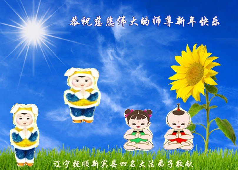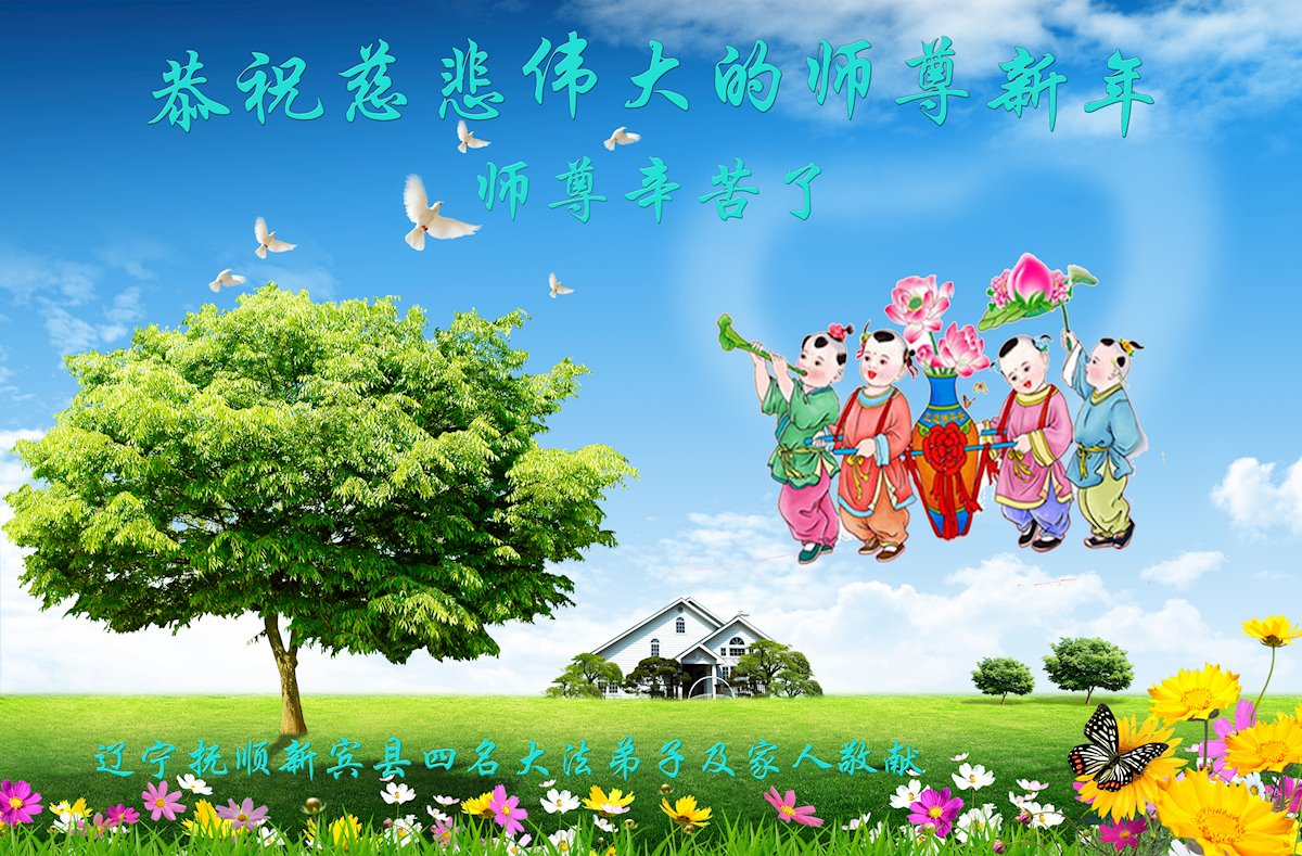 辽宁抚顺新宾县四名大法弟子及家人恭祝师尊新年好!