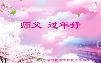 新春佳节送祝愿 隔岸相望拜师父 愿师早日回大陆 师徒团圆同庆祝 辽宁省辽阳市大法弟子恭祝师父过年好!