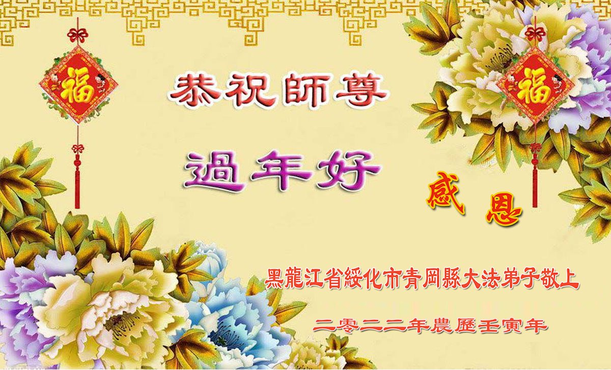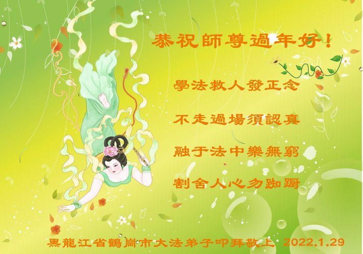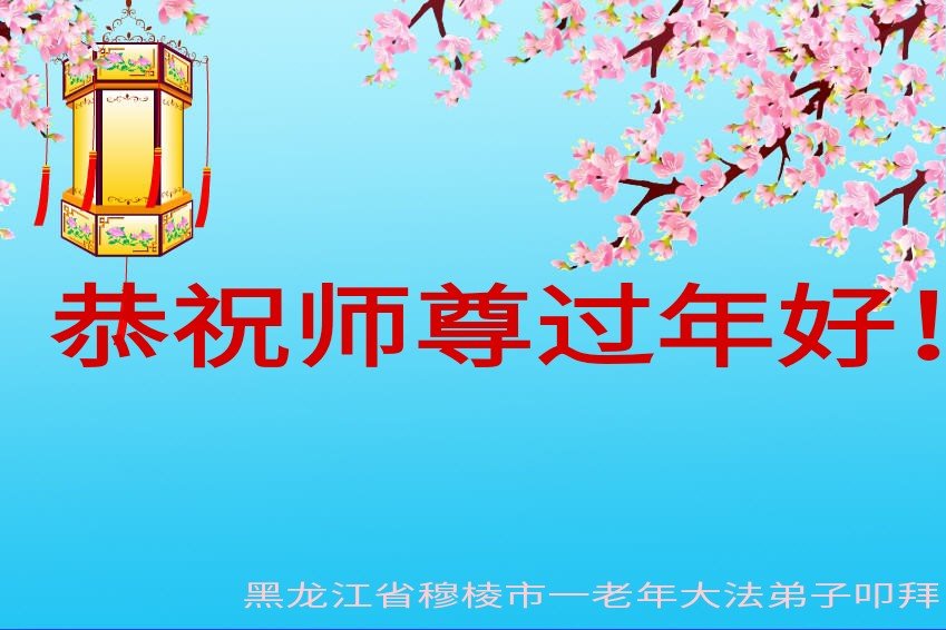 【明慧网二零二二年二月一日】 黑龙江省牡丹江市穆棱市一老年大法弟子恭祝慈悲伟大的师尊过年好!