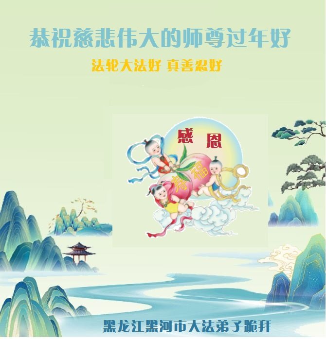 师尊过年好!师尊您辛苦了!叩谢师尊救度之恩! 弟子们会修好自己,修出慈悲,善待家人,多救众生。 黑龙江省绥化市青冈县大法弟子恭祝师尊过年好!弟子叩谢师恩!