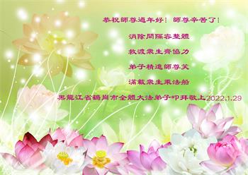 师尊过年好!弟子一定不辜负师父的慈悲救度,紧跟师尊的正法進程。感恩师父!谢谢师父!弟子叩拜师父! 2022年1月29日 黑龙江省鹤岗市全体大法弟子恭祝师尊过年好!师尊辛苦了!