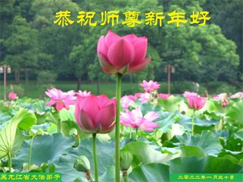 我一定实实在在的跟随师尊走好最后的正法之路,多学法,修好自己,多多救人,请师尊放心。 黑龙江省大法弟子恭祝师尊新年好!感恩师尊救度!