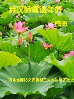 叩拜师恩! 河北省廊坊市文安农村三名大法弟子恭祝师尊过年好!