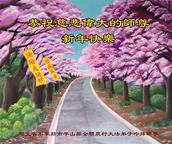慈悲伟大的师父新年好!我们农村大法弟子要形成整体,多救人,回报师恩。谢谢师父慈悲救度! 河北省唐山市丰润区任各庄镇农村大法弟子恭祝慈悲伟大的师尊新年快乐!师父您辛苦了!