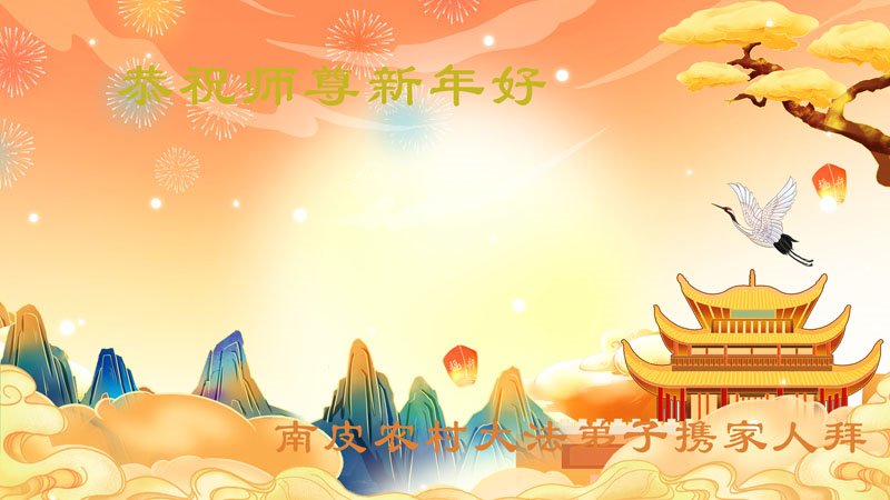 我们大法弟子在新的一年里抓紧救度更多世人,请师尊放心。莱阳一农村学法小组大法弟子敬上。 河北省保定市定州市农村大法弟子及全家恭祝师尊过年好!祝师尊新年快乐!