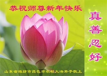 慈悲伟大的师尊新年好!弟子对您的慈悲救度无法用语言表达,弟子只有精進实修、做好三件事,多救人回报师恩。弟子叩拜师尊! 山东省潍坊市昌邑市全体大法弟子恭祝师尊新年快乐!