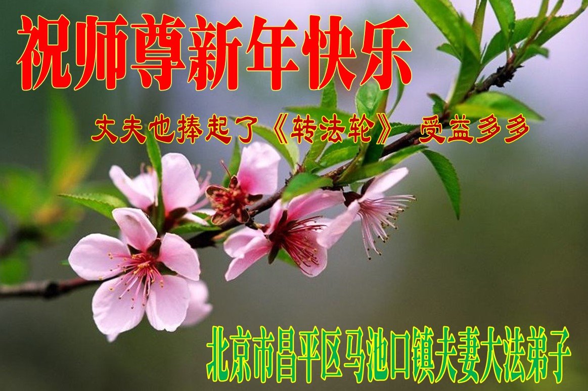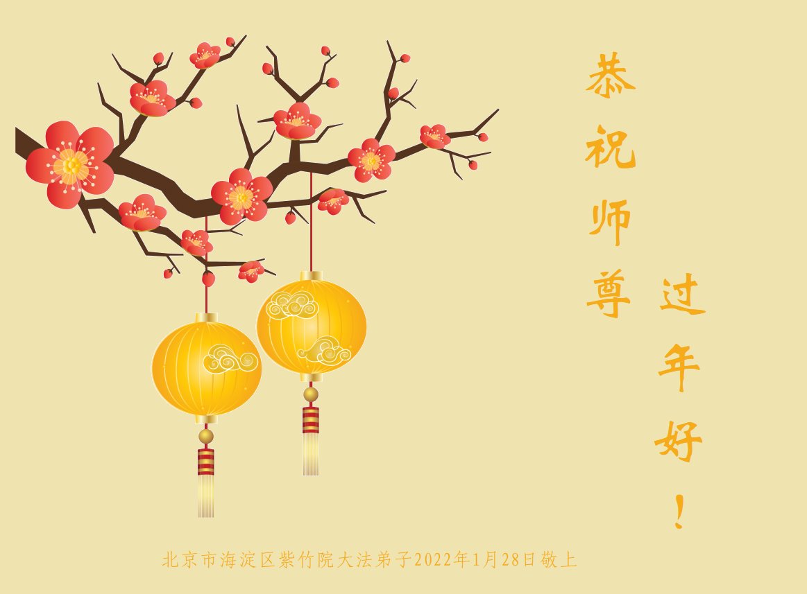 祝师尊新年快乐!我和丈夫共同学法,受益多多。 北京市昌平区马池口镇夫妻大法弟子 2022年1月26日 北京市昌平区马池口镇一大法弟子恭祝师尊新年快乐!