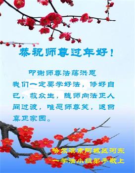 法轮大法好!弟子们亲身体会了心性提升、身体健康,家庭平安幸福的感受! 黑龙江省哈尔滨市大法弟子恭祝师尊过年好!