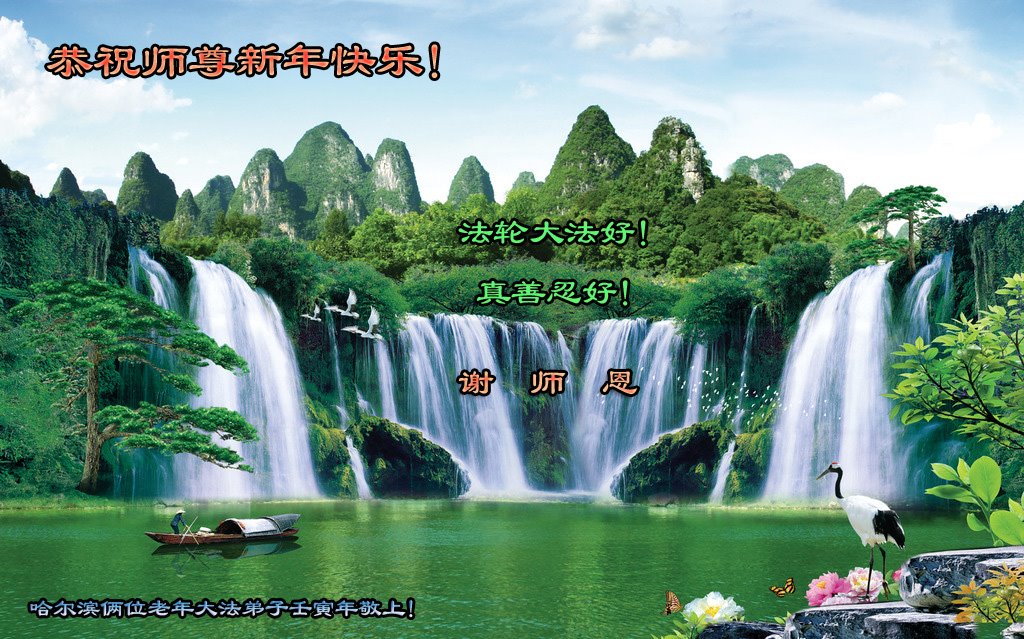 谢谢师尊慈悲救度!听师父的话。叩谢师恩! 哈尔滨两位老年大法弟子壬寅年敬上 黑龙江哈尔滨三位大法弟子恭祝师尊新年快乐!