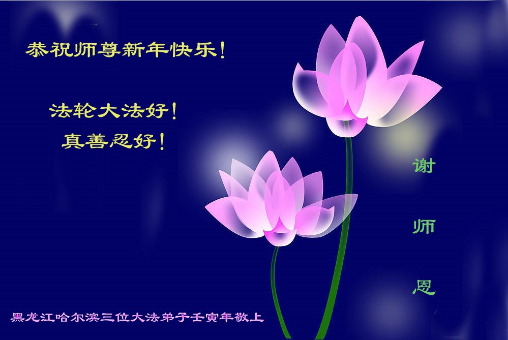 【明慧网二零二二年二月一日】 黑龙江省哈尔滨大法弟子恭祝慈悲伟大的师尊新年快乐!